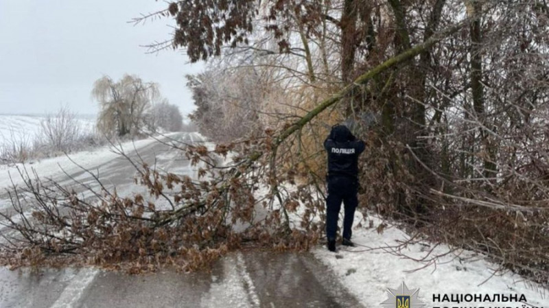 Складні погодні умови спричиняють і обмерзання дерев, які падають на дроти, або на проїжджу частину та створює небезпеку для учасників дорожнього руху, повідомляють у поліції Київщини.