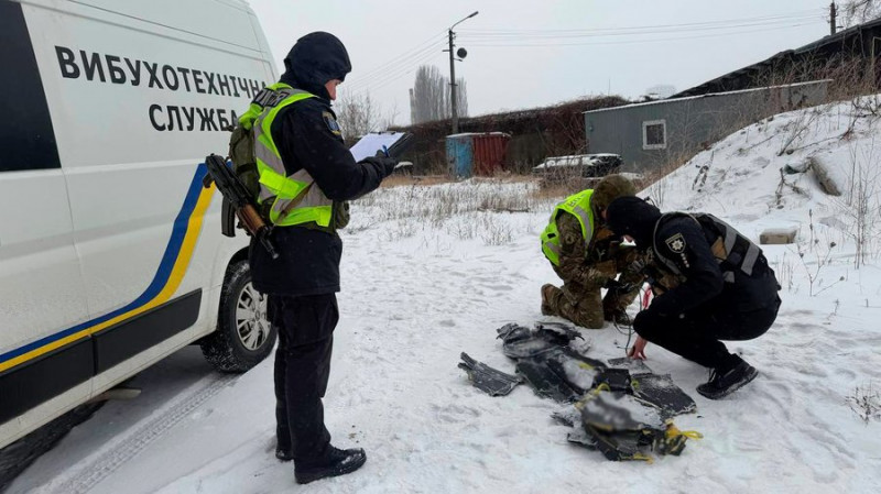 Уламки російського ударного безпілотника на території столичної недобудови . Поліція Києва
