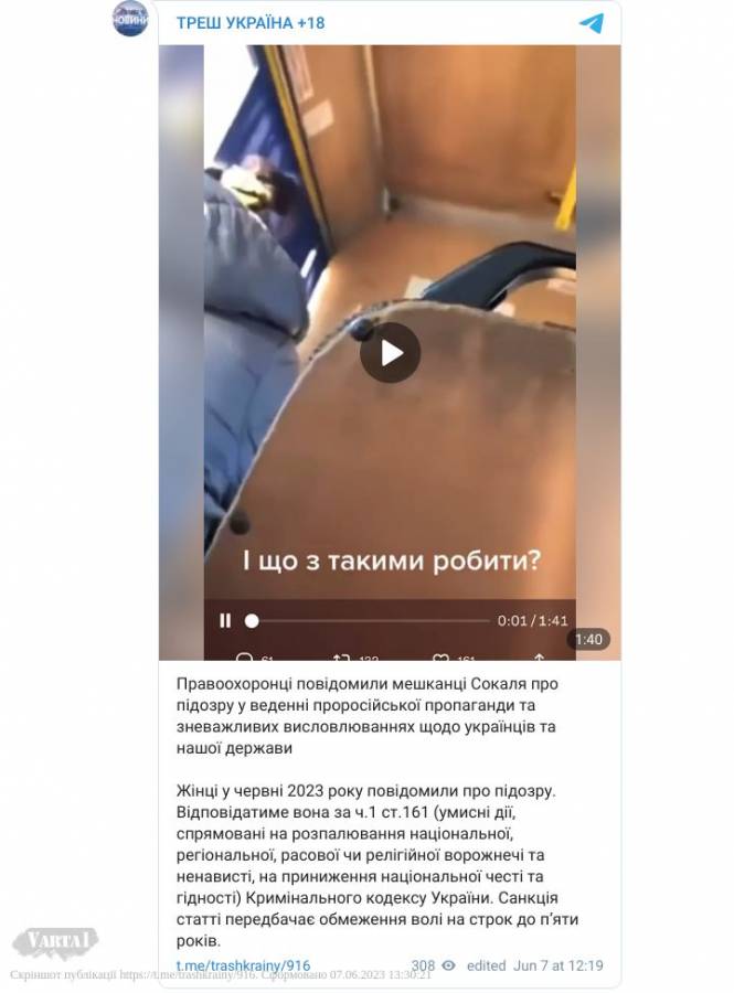 Відео із фанаткою «руского міра» у листопаді 2022 року зняли місцеві жителі та опублікували його в соціальних мережах. Це сталось у маршрутці в місті Сокаль Львівської області. Після цього справою зацікавились правоохоронці.