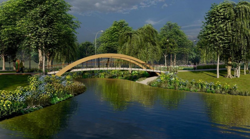 Візуалізація мосту у парку на вулиці Прирічній в Оболонському районі Києва. КМДА