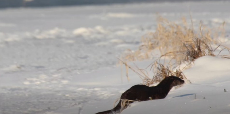 Видра на засніженому березі. НПП «Дністровський каньйон»