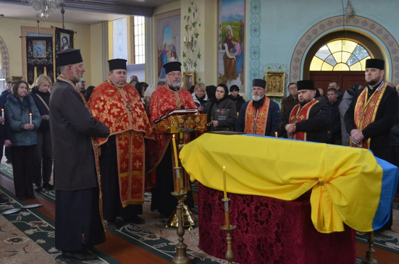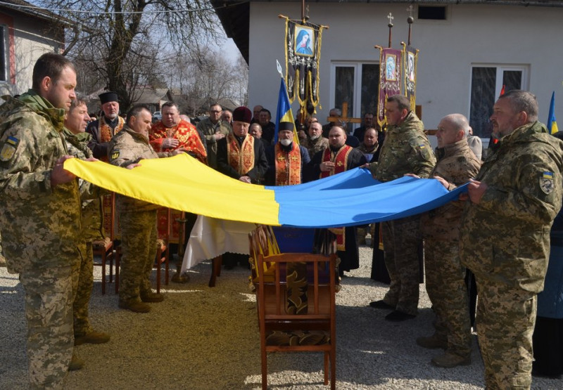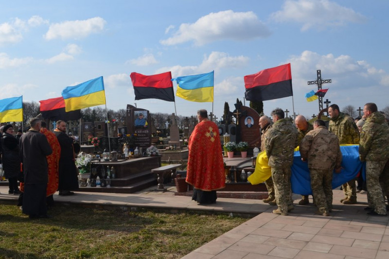 Над труною захисника України розгорнули ппрапор. Білобожницька громада