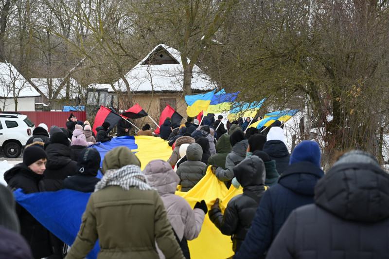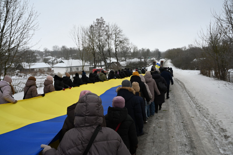 Люди несуть прапор Лановецька ОТГ