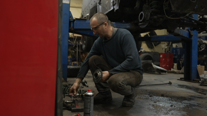Сергій Плічко ремонтує військовий автомобіль. Суспільне Тернопіль