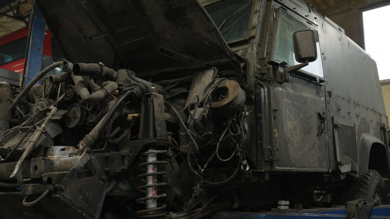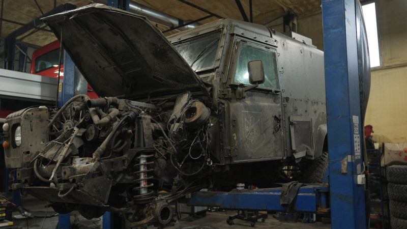 Броньований автомобіль Land Rover до ремонту. Михайло Роговик