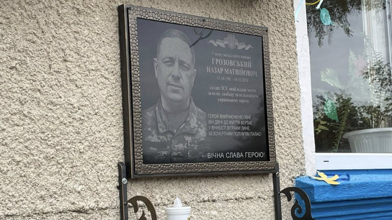 На Тернопільщині відкрили меморіальну дошку на честь військовослужбовця Збройних сил України Назара Грозовського. Пам’ятний знак встановили на фасаді загальноосвітньої школи І–ІІІ ступенів Заліщицької міської ради в селі Торське.