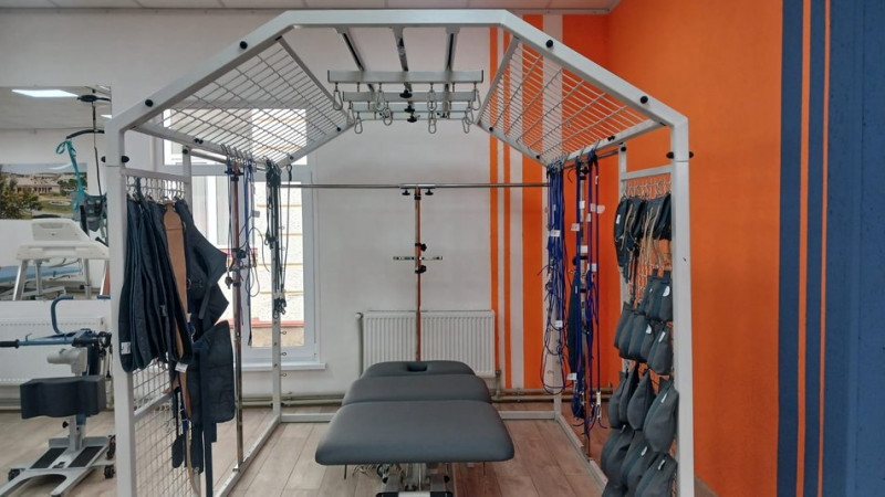 "Зал фізичної терапії оснащений обладнанням, яке вимагає Національна служба здоров’я України. Є обладнання для кінезіотерапії, підвісної. Є медичні підвісні доріжки також з підвісною системою для фіксації пацієнтів, які перенесли інсульт, черепно-мозкові травми. Також є імітація сходів, схилів та ходьби з перешкодами. Є реабілітаційні кушетки, вертикалізатори, які потрібні для спінальних хворих. Іншого обладнання теж достатньо", — говорить Олена Бардецька.