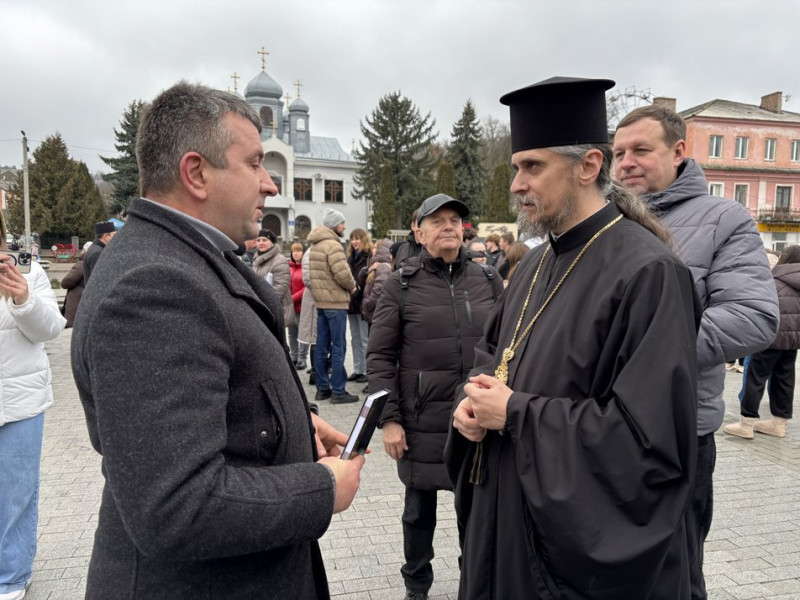 Відвідувачі вуличної виставки «Церковний рашизм» у Кременці. Суспільне Тернопіль