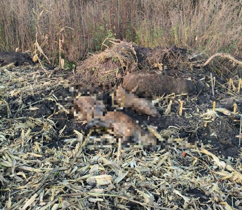 Після надходження інформації про загибель диких свиней спеціалісти виїхали на місце події. Попри попередні повідомлення про трьох загиблих тварин, у ході робіт виявили загалом сім туш, з них — четверо поросят.