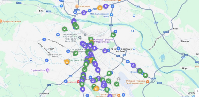 Зараз на трекері є такі автобуси приватних перевізників: 3, 21, 26, 33, 36, 37.