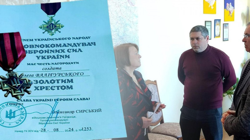 Рідним зниклого безвісти захисника з Вінниччини Олега Валігурського передали його нагороду — нагрудний знак Головнокомандувача Збройних Сил України "Золотий Хрест".