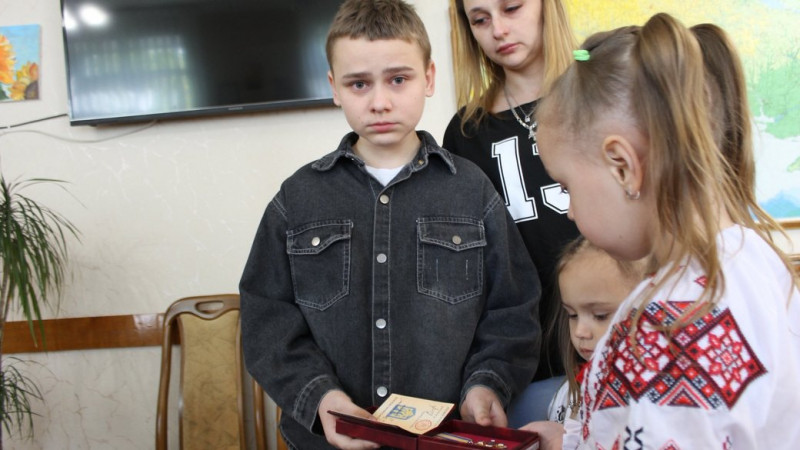 Родина молодшого сержанта Миколи Думанського отримує його нагороду орден «За мужність». Юрій Яцук, голова Могилів-Подільської РДА