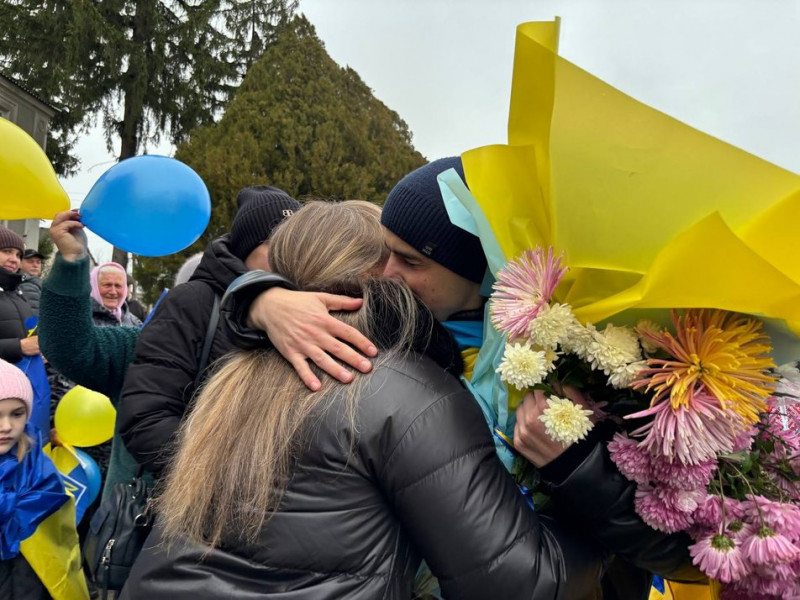 Захисник пробув у російській неволі 1153 дні та повернувся додому в рамках одного з наймасштабніших обмінів. Про це повідомила кореспондентка Суспільного з місця події.