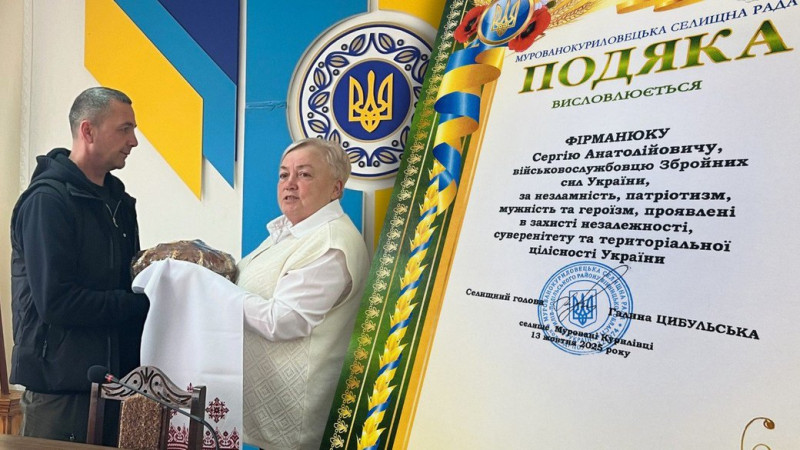 Зустрічали захисника в актовій залі селищної ради із короваєм. Йому також вручили подяку за незламність, патріотизм, мужність та героїзм, проявлені в захисті незалежності, суверенітету та територіальної цілісності України, та повербанк.