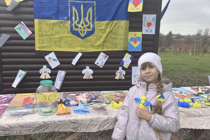 Дев’ятирічна Дарʼя Таранушенко із села Куна на Вінниччині з початку повномасштабної війни виготовляє для захисників патріотичні ангели. За цей час виробила кілька тисяч таких оберегів. А ще дівчинка продає свої вироби за донати військовим, допомагає пекти смаколики та передає їх бійцям через волонтерів.