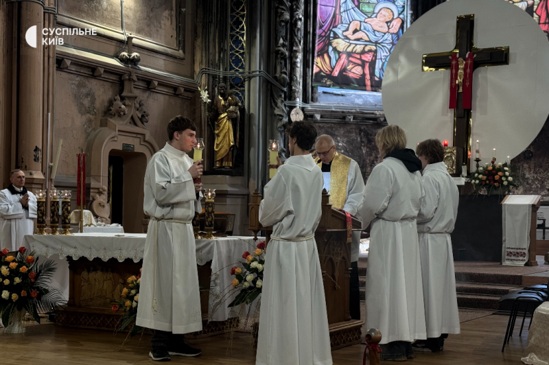 Великодня служба у костелі Святого Миколая. Київ, 5 квітня 2026 року. Суспільне Новини/Нікіта Галка