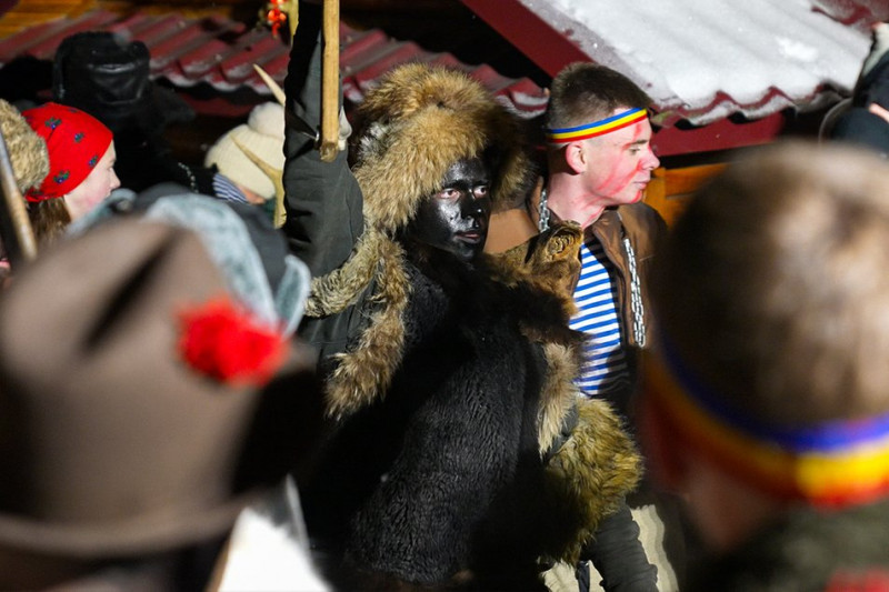 Учасник Маланки в костюмі ведмедя. Суспільне Чернівці