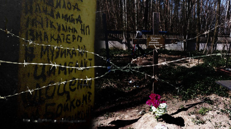 Список померлих у підвалі жителів Ягідного під час російської окупації у березні 2022 року та могила одного з померлих бранців. Суспільне Чернігів