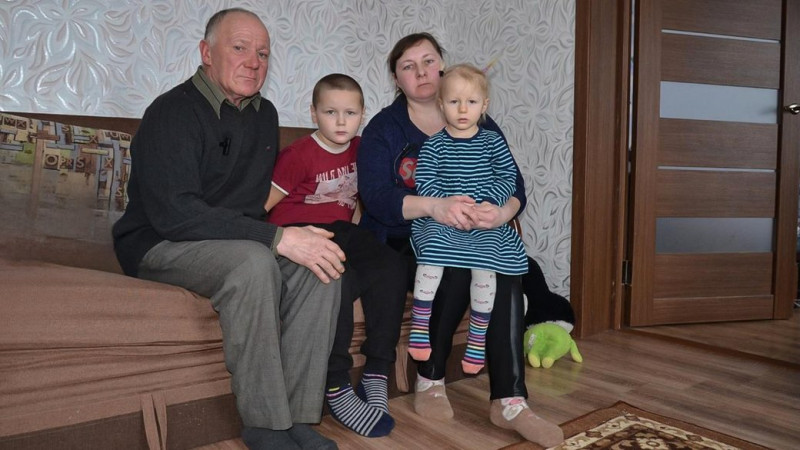 Володимир Іващенко з донькою Юлією та онуками — Міланою і Романом. Хлопчик перебував у підвалі, коли йому було три роки. Суспільне Чернігів