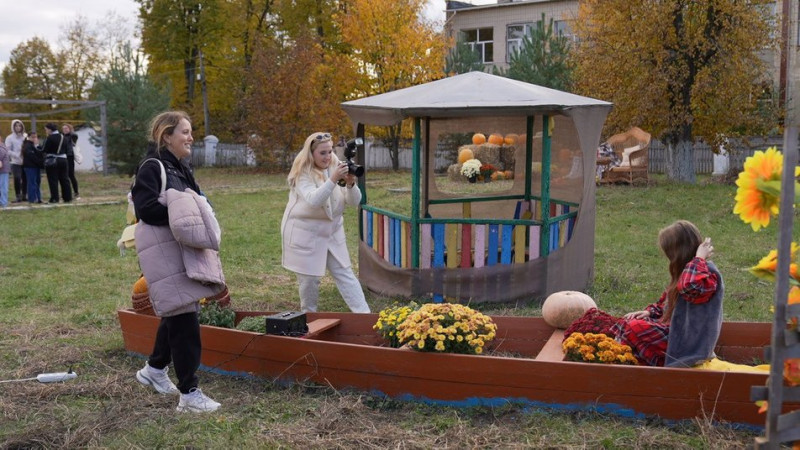 Фотозона у селищі Сутиски, що на Вінниччині. Суспільне Вінниця"У нас період шкоди, немає чоловіка поруч, не можемо разом з ним відчути цей момент, залишити собі такі моменти в пам'яті. Але хоч так, хоч самі, хоч якась позитивна така нотка в сьогоденні", — сказала жінка.