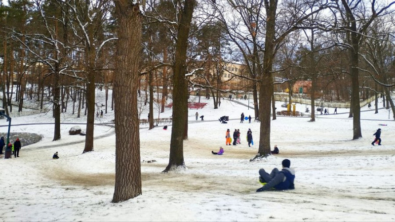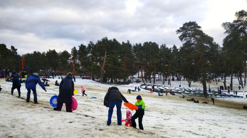 Люди катаються на сніговій гірці. Cуспільне/Таміла Баранівська