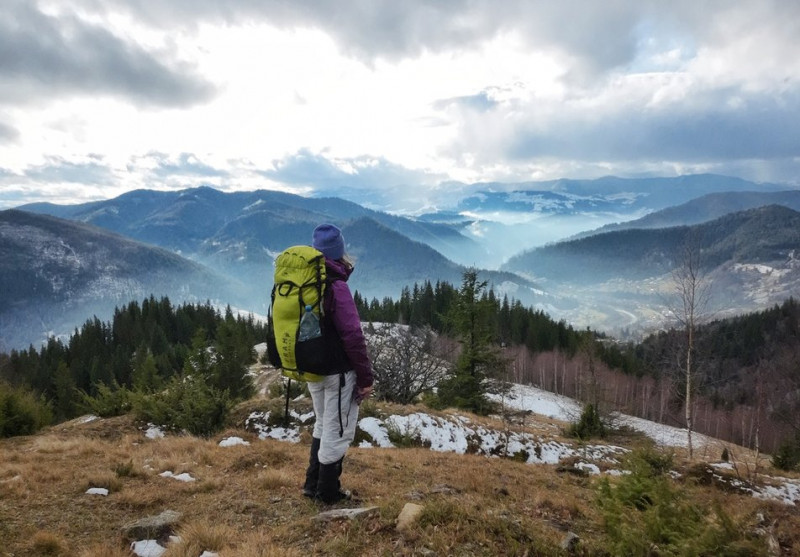 Перед мандрівкою жінка збирається дуже швидко – двадцять хвилин і готово. Рюкзак важить орієнтовно 18 кілограмів. У ньому – все найнеобхідніше для зимової подорожі – спальник, спорядження, їжа.