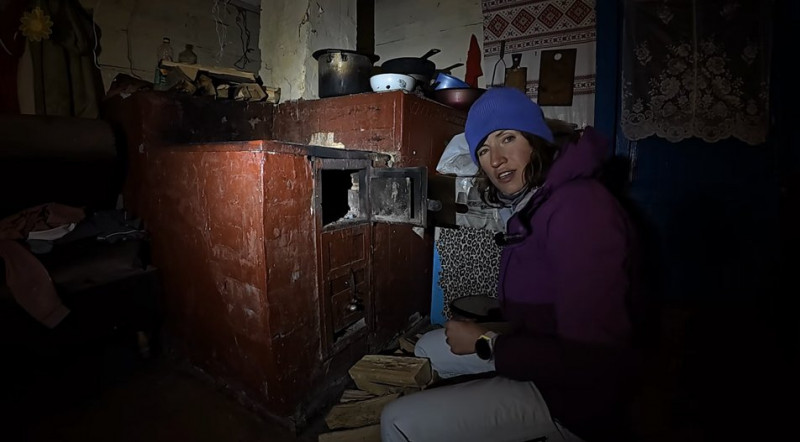 Тут немає світла й електропостачання. Аби трохи розігріти хату, мандрівниця береться шукати й колоти дрова. Іноді заготовлює собі в осінніх подорожах, аби взимку було легше. До найближчого джерела треба трохи пройтися – щоби принести до свого тимчасового дому води.