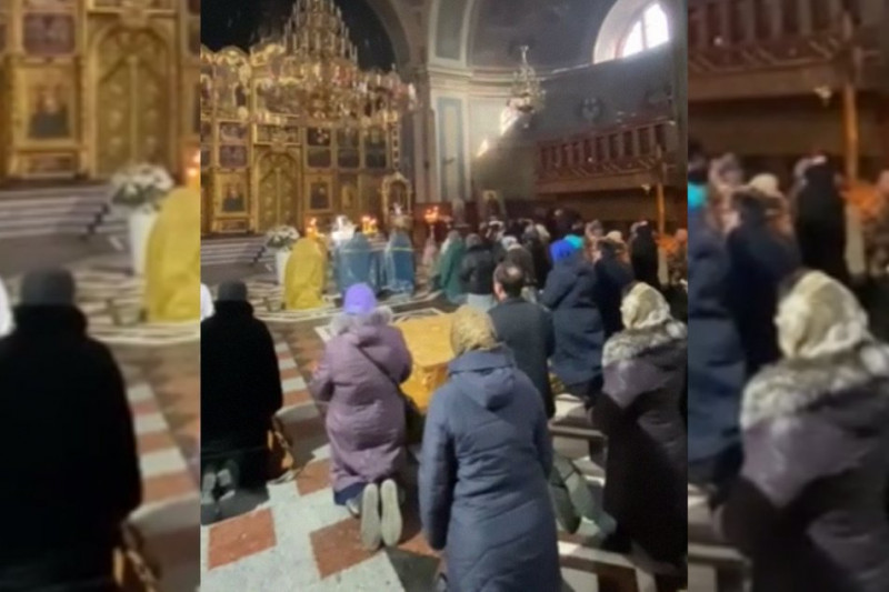 Другий день цілодобового молитовного стояння у Кафедральному храмі в Чернівцях . Скріншот з відео: Telegram/Orthobuk — православна спільнота УПЦ