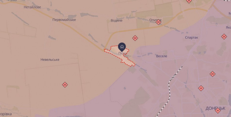 Селище Піски на мапі, де Іван отримав друге поранення. DeepStateMAP