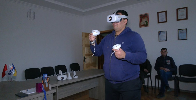 Андрій Цой під час заняття з окулярами віртуальної реальності. Суспільне Чернівці