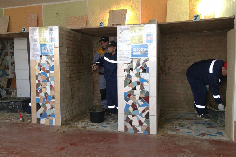 Підопічні психоневрологічного інтернату, які навчаються на малярів-штукатурів у будівельному ліцеї. Суспільне Чернівці