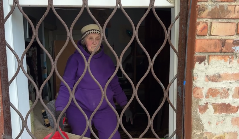 Віра прибирає побите скло в своєму помешканні. Суспільне Дніпро