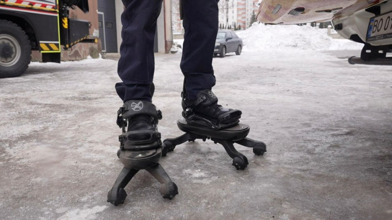 Піротехнік Олександр Осадчий показав спеціальне взуття, яке використовує в роботі під час розмінування. Пожежно-рятувальна служба Тернопільщини