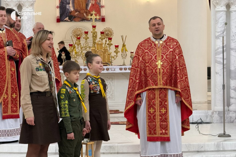 Українські пластуни передали Вифлеємський вогонь миру в Патріарший собор Воскресіння Христового УГКЦ у Києві.