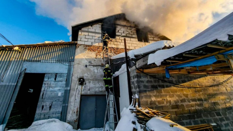 Горіла пилорама поблизу Тернополя, 17 січня 2026 року. Пожежно-рятувальна служба Тернопільщини
