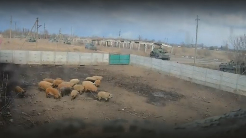 Вадим говорить: прибула ще техніка, а російські військові почали облаштовувати позиції навколо ферми. Вибивши танком ворота до ангару, росіяни помітили собаку подружжя Мінєвських та вбили його, а потім почали вбивати й свиней.