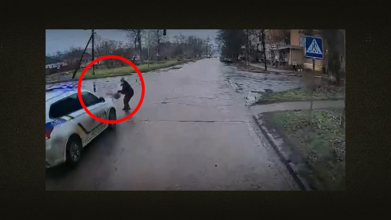 Скрін з відео, на якому видно, як поліцейські збили пішоходів у Прилуках 10 грудня 2025 року. Очевидці