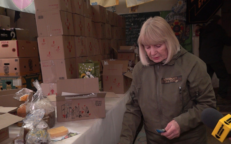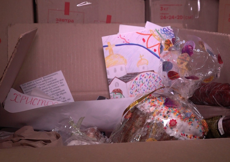 "Сюди входить: паска — обов’язково, ковбаска, хрін, яйця вже положила, цукерки, шинка, наклейки на яйця. Яйця передаємо сирі. Хлопці вже собі там зварять. Більше 1000 наборів".