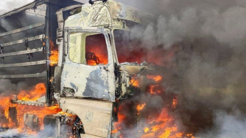 Унаслідок обстрілів Нікопольщини зайнялася вантажівка, 11 квітня 2026 року. Олександр Ганжа/Telegram