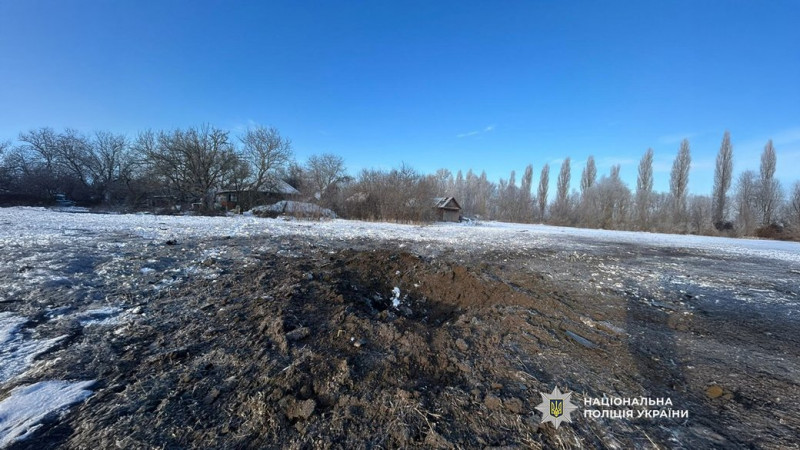 Вирва від вибуху російського БпЛА на Чернігівщині 13 січня 2026 року. Поліція Чернігівської області