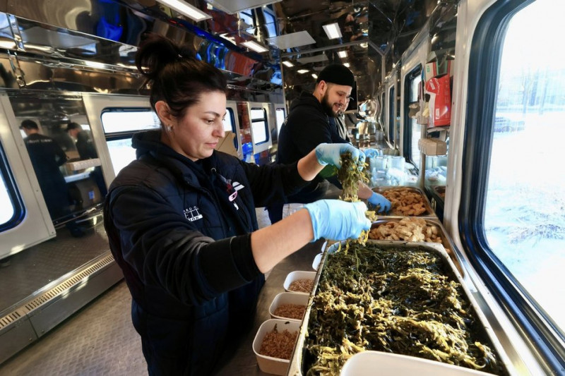 Поїзд-кухня — це повністю автономне рішення з потужністю до 10 тисяч порцій на добу. Повноцінне меню містить перші та основні страви, салати, фрукти. Поїзд готує та передає їжу, а громади забезпечують логістику й доставку.