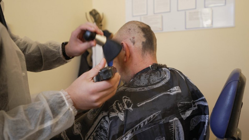 Один із засуджених опанував у Сокирянській колонії професію перукаря й стриже іншого в’язня. Суспільне Чернівці