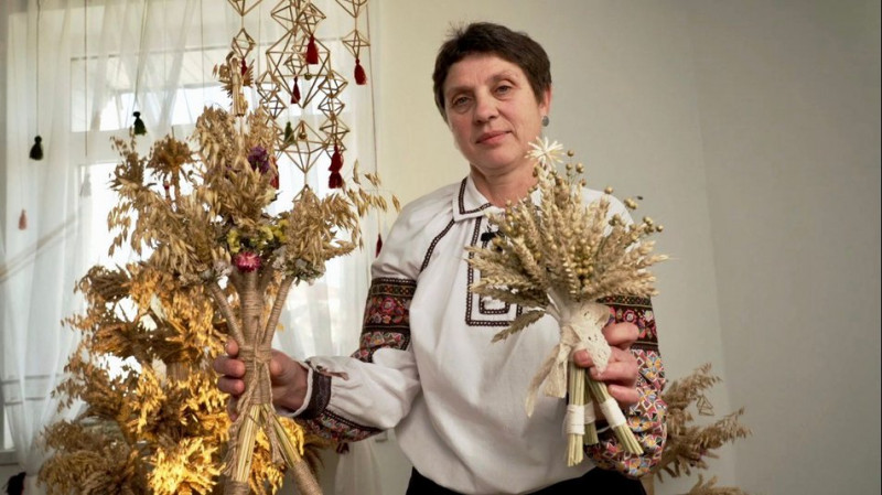 Олени Різник демонструє готові дідухи. Суспільне Тернопіль