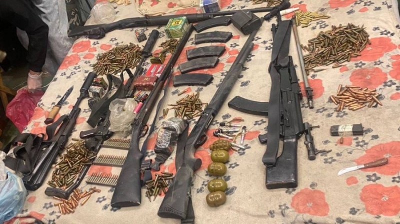 Правоохоронці провели у помешканні обшук і знайшли ручний кулемет Калашникова, два автомати Калашникова складні укорочені (АКСУ) з глушниками та сім магазинів до них, три гладкоствольні гвинтівки, чотири гранати "РГД-5", одну гранату "Ф-1", п’ять підривачів типу "УЗРГМ" і понад 1600 набоїв різного калібру.