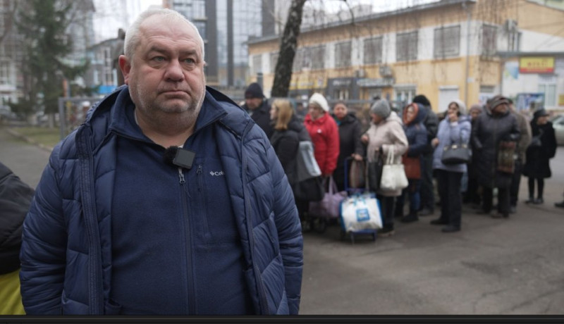У черзі — Мирослав Пончко. Чоловік ходить за обідами сюди три роки.