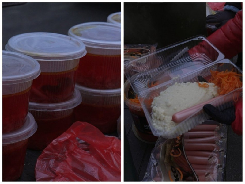 "У нас є гарячий кускус, сосиска, корейська морква, борщ. Маємо свіжий хлібчик, печиво даємо і прибори".