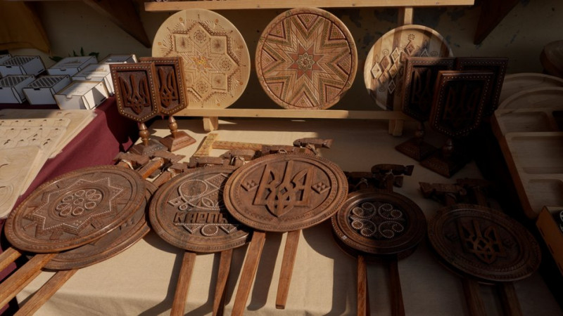 Різьбяр Володимир Запорожець продає на Косівському ринку. Суспільне Чернівці