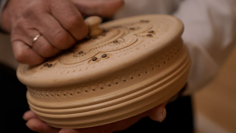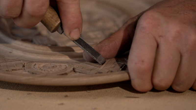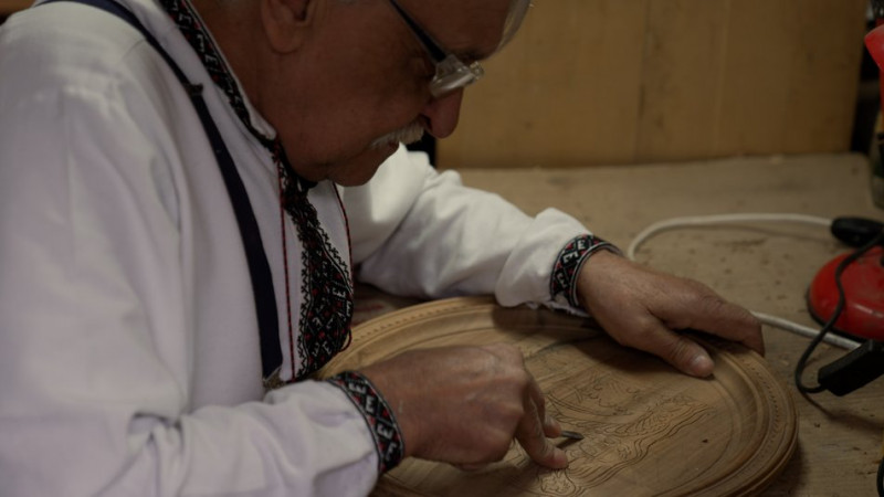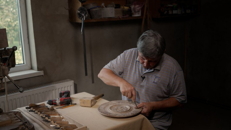 Майстер Дмитро Курик вирізьбив себе на тарілці. Суспільне Чернівці