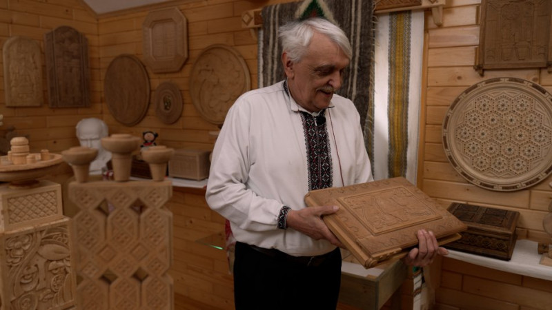 Усе життя різьбярству присвятив й майстер з Виженки на Буковині Дмитро Курик. Зараз чоловіку 73. З них понад 50 років різьбить, а ще вчить цього ремесла студентів.