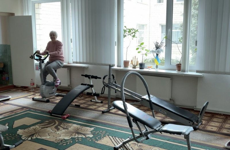 69-річна Валентина Гречкіна проживає у центрі перший місяць, і вже почала відвідувати тренажерний зал. Жінка каже, що спорт допомагає їй швидше подолати стрес від переїзду: